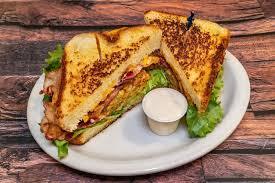 Baked turkey, baked ham, crispy bacon, cheddar, Swiss, lettuce, tomato, and chipotle ranch stacked tall.